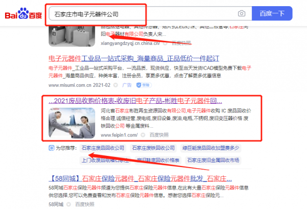 石家莊*勝廢品回收有限公司選用我司企業電子元器件行業的網站優化產品,其SEO關鍵詞有電子元器件。快速優化系統火速推采用智能數據系統,效果一目了然,包括關鍵詞排名,消費,余額等,并通過大量的數據分析優化廣告效果。石家莊*勝廢品回收有限公司成立于2017年,是經石家莊市市場監督管理局審核的有資質的公司,其統一社會信用代碼:91130124M**8Y5PQ5K。公司地址:河北省石家莊市欒城區白佛趙村中心路。