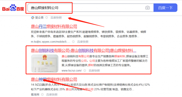唐山*銳科技有限公司選用我司企業焊接材料行業的網站優化產品,其SEO關鍵詞有焊接材料。覆蓋國內幾大主流搜搜引擎,占領電腦端、手機端,24小時快速獲取關鍵詞排名,搶奪流量。唐山*銳科技有限公司成立于2016年,是經唐山市市場監督管理局審核的有資質的公司,其統一社會信用代碼:91130202M**7PD7L1J。公司地址:河北省唐山市路北區友誼路東側、新華西道北側的茂華中心27-1-826-2號。