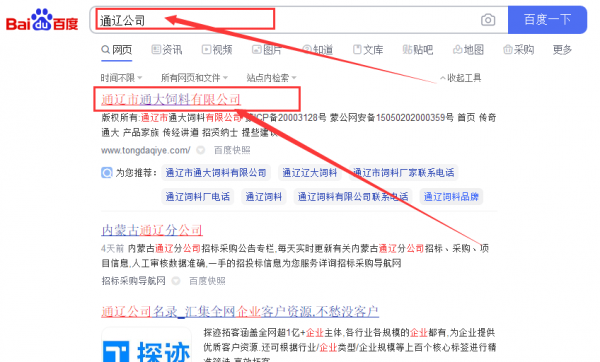 通遼市通*飼料有限公司百度排名效果展示