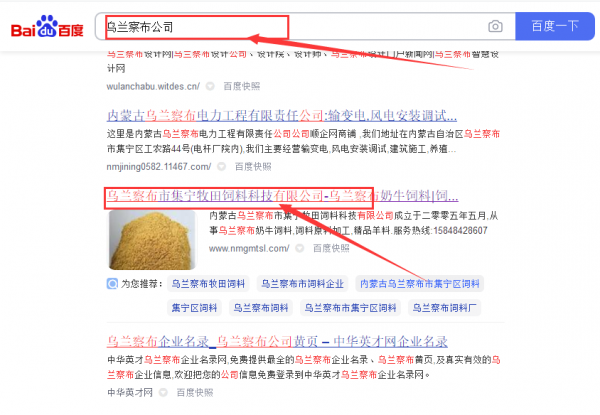 內蒙古烏蘭察布市集*牧田飼料科技有限公司百度關鍵詞排名到首頁無排名不收費
