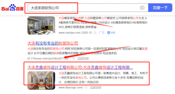 大連藝*裝飾設計工程有限公司選用我司企業家居軟飾的網站優化產品,其SEO關鍵詞有家居軟飾。無論你關鍵詞是在20名內、30名內、還是50名內。我們都可以在最短時間優化至搜索引擎的首頁。提供后臺管理,排名查詢、關鍵詞管理、財務扣費一目了然,一鍵操作。大連藝*裝飾設計工程有限公司成立于2003年,是經大連市市場監督管理局審核的有資質的公司,其統一社會信用代碼:912102047**392852E。公司地址:遼寧省大連市沙河口區如意街24號26層5號。