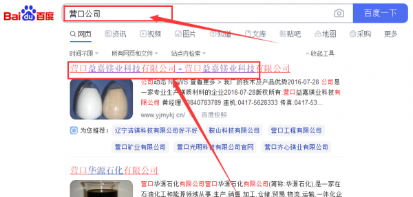 營口益*鎂業(yè)科技有限公司百度排名效果展示