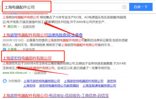 上海波宏特電器部件有限公司選用我司企業電器配件行業的網站優化產品,其SEO關鍵詞有電器配件。按天計費,最快7天上詞,不到首頁不扣費。關鍵詞質量保證,白帽SEO符合百度算法,360、搜狗、移動端等排名效果免費贈送。上海波宏特電器部件有限公司成立于2005年,是經上海市市場監督管理局審核的有資質的公司,其統一社會信用代碼:9131011431249461XL。公司地址:上海市嘉定區朱戴路1783號1幢C區。
