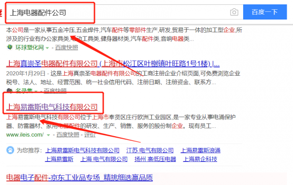上海易雷斯電氣科技有限公司選用我司企業(yè)電器配件行業(yè)的網站優(yōu)化產品,其SEO關鍵詞有電器配件。按天計費,最快7天上詞,不到首頁不扣費。關鍵詞質量保證,白帽SEO符合百度算法,360、搜狗、移動端等排名效果免費贈送。上海易雷斯電氣科技有限公司成立于2006年,是經上海市市場監(jiān)督管理局審核的有資質的公司,其統一社會信用代碼:91310120797014863Y。公司地址:上海市奉賢區(qū)莊行鎮(zhèn)莊北路411號127室。
