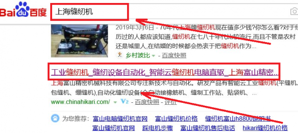 我們公司與上海富山精密機械科技有限公司合作中,對這個公司所經營的縫紉機這個行業提供了百度快照排名,與該公司的合作,更多的客戶讓我們公司為其提供百度快照排名,通過每一次合作,我們公司不斷完善自己,同時希望合作伙伴在經營的路上越來越好。