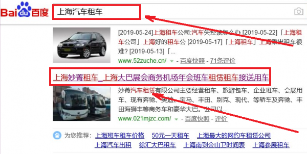 我們公司與上海妙菁汽車租賃有限公司合作中,對這個公司所經營的汽車租車這個行業提供了搜索引擎優化推廣,與該公司的合作,更多的客戶讓我們公司為其提供搜索引擎優化推廣,通過每一次合作,我們公司不斷完善自己,同時希望合作伙伴在經營的路上越來越好。