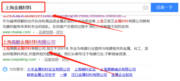 上海高鵬金屬材料有限公司選用我司企業金屬材料的網站優化產品,其SEO關鍵詞有金屬材料??焖賰灮到y火速推采用智能數據系統,效果一目了然,包括關鍵詞排名,消費,余額等,并通過大量的數據分析優化廣告效果。上海高鵬金屬材料有限公司成立于2001年,是經上海市市場監督管理局審核的有資質的公司,其統一社會信用代碼:91310107703159464U。公司地址:上海市普陀區中山北路2299號175A室。