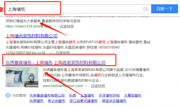 上海茗茗裝飾材料有限公司選用我司企業墻紙行業的網站優化產品,其SEO關鍵詞有墻紙。主要針對百度、搜狗、360等搜索引擎進行快速排名優化服務,關鍵詞排名必要條件是在搜索結果前3頁,周期15天內可優化到搜索引擎首頁。上海茗茗裝飾材料有限公司成立于1993年,是經上海市市場監督管理局審核的有資質的公司,其統一社會信用代碼:91310117051238959G。公司地址:上海市松江區石湖蕩鎮張莊村799弄13號-222室。