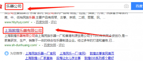 上海敦煌樂器有限公司跟本公司簽訂百度快照排名項目