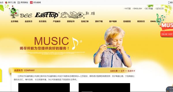 江蘇東方樂器有限公司(原江陰市東方樂器有限公司)位于周恩來總理的故鄉--江蘇淮安,擁有得天獨厚的地理優勢:京滬高速公路、寧連高速公路在此交匯,境內自然、 社會資源豐富,為公司發展創造了優良的社會條件。東方樂器創建于1997年,目前有400多名員工,下設三個口琴生產基地,分別生產不同檔次,不同品質、不同品牌的口琴、口風琴和豎笛、鈴鼓等樂器。公司采用先進的自動化設備生產和精良的測試手段,進口的點焊設備和音準儀器,確保產品符合生產標準,品質是我們的核心要素,確保產品質量、產量不斷提升。目前,東方樂器經過精心打造的EASTTOP品牌口琴,品種齊全,產品豐富。復音、半音階、布魯斯、中音、重音、貝斯、和弦、笛聲等口琴,具有音色優美,極富表現力和使用壽命長的特點,受到越來越多的口琴演奏家的青睞,可以和進口產品相媲美,很多出名的口琴團隊已經整團隊采用東方產品,替代進口口琴,收到極佳的演出效果。
