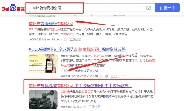 常州市*昊包裝有限公司選用我司企業防偽商標的網站優化產品,其SEO關鍵詞有防偽商標。從站內到站外,人工智能全新搜索優化技術,最快7天關鍵詞排名上首頁,利用互聯網營銷手法,多平臺,多樣化進行品牌內容鋪設,營造企業正面形象。常州市*昊包裝有限公司成立于2019年,是經常州市市場監督管理局審核的有資質的公司,其統一社會信用代碼:91320412M**YC1403U。公司地址:江蘇省常州市武進區洛陽鎮瞿家村瞿楊路6號。