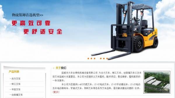 鹽城市大豐*泰杭機械設備有限公司 為合力叉車、柳工叉車、臺勵福叉車以及豐田叉車鹽城大豐直營店,本公司為您提供從叉車整機、配件供應、售后維修、整機租賃的一條龍服務。 本公司為您提供1-46T內燃叉車、1T-5T電動叉車、1T-5T手動搬運車、1T-2T電動及半電動堆垛車、窄道式叉車、特種叉車等各系列叉車品種,是你解決搬運問題的 伙伴。