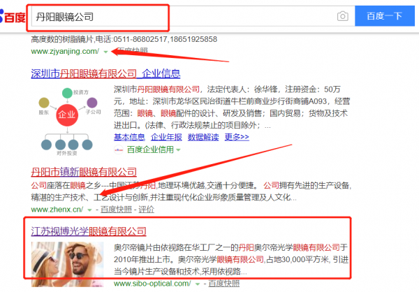 江蘇視博光學眼鏡有限公司選用我司企業眼鏡的網站優化產品,其SEO關鍵詞有眼鏡。支持新站、不限排名、按天計費、快速排名、支持百度、360等主流搜索引擎,不達首頁不扣錢,域名空間一步到位,讓您的網站更安全,更放心。江蘇視博光學眼鏡有限公司成立于2010年,是經丹陽市市場監督管理局審核的有資質的公司,其統一社會信用代碼:91321181555819765Q。公司地址:江蘇省丹陽市云陽街道云陽高新區南三環西首。