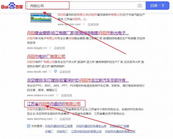 丹陽市*盛紡織有限公司關鍵詞推廣排名效果展示