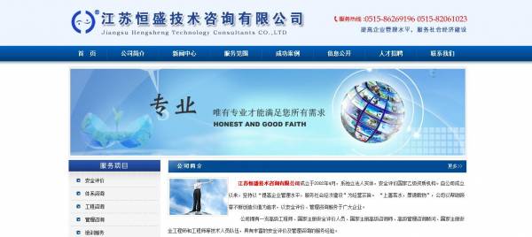 江蘇恒盛技術(shù)咨詢有限公司成立于2002年4月,系獨立法人實體,安全評價國家乙級資質(zhì)機構(gòu)。自公司成立以來,堅持以“提高企業(yè)管理水平,服務(wù)社會經(jīng)濟建設(shè)”為經(jīng)營宗旨。 “上善若水,厚德載物”,公司以幫助顧客不斷創(chuàng)造價值為追求,以安全評價、管理咨詢服務(wù)于廣大企業(yè)。