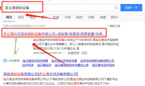 我們公司與連云港遠洋流體裝卸設備有限公司合作中,對這個公司所經營的裝卸設備這個行業提供了百度快照排名,與該公司的合作,更多的客戶讓我們公司為其提供百度快照排名,通過每一次合作,我們公司不斷完善自己,同時希望合作伙伴在經營的路上越來越好。