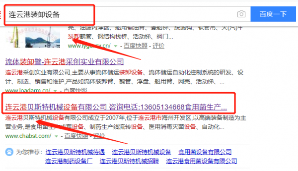 我們公司與連云港貝斯特機械設備有限公司合作中,對這個公司所經營的裝卸設備這個行業(yè)提供了百度快照排名,與該公司的合作,更多的客戶讓我們公司為其提供百度快照排名,通過每一次合作,我們公司不斷完善自己,同時希望合作伙伴在經營的路上越來越好。