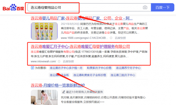 連云港唯愛*母嬰護理服務有限公司整站優化快上詞效果展示