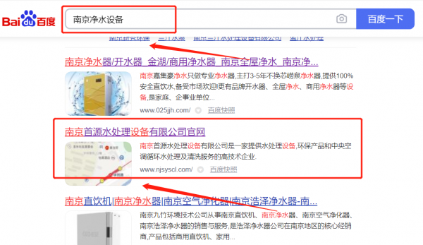南京首*水處理設備有限公司整站優化最快上詞效果展示