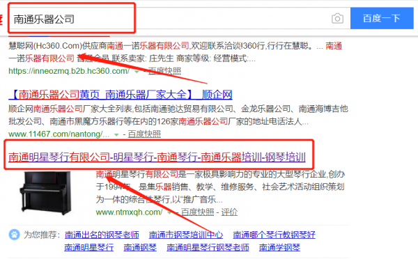我們公司與南通明星琴行有限公司合作中,對這個公司所經(jīng)營的樂器這個行業(yè)提供了百度快照排名,與該公司的合作,更多的客戶讓我們公司為其提供百度快照排名,通過每一次合作,我們公司不斷完善自己,同時希望合作伙伴在經(jīng)營的路上越來越好。