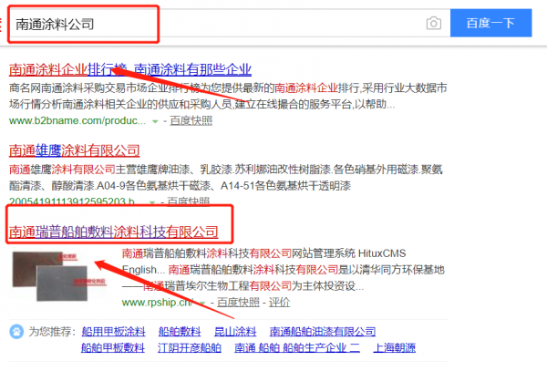 我們公司與南通瑞普船舶敷料涂料科技有限公司合作中,對這個公司所經營的涂料這個行業提供了SEO優化,與該公司的合作,更多的客戶讓我們公司為其提供SEO優化,通過每一次合作,我們公司不斷完善自己,同時希望合作伙伴在經營的路上越來越好。