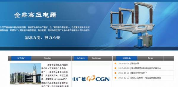 如皋市*鼎高壓電器有限公司(下文簡(jiǎn)稱“*鼎電器”),是主要從事高壓斷路器、高壓隔離開(kāi)關(guān)、高壓互感器、避雷器等10kV-110kV的戶外敞開(kāi)式高壓電器設(shè)備的專業(yè)生產(chǎn)廠家。公司目前擁有2條完善的生產(chǎn)裝備線,年生產(chǎn)能力達(dá)到400多臺(tái)套以上。*鼎電器公司堅(jiān)持產(chǎn)品以技術(shù)創(chuàng)新,質(zhì)量可控,性能穩(wěn)定、服務(wù)優(yōu)質(zhì)為企業(yè)宗旨,產(chǎn)品廣泛應(yīng)用于電力、冶金、石化、機(jī)械、交通等部門(mén),目前產(chǎn)品已在中廣核、電力系統(tǒng)、中電投、石油、新疆建設(shè)兵團(tuán)等工程項(xiàng)目嶄露頭角。