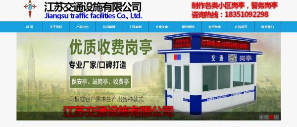 江蘇交通設施有限公司選用我司企業崗亭行業的網站優化產品,其SEO關鍵詞有 小區崗亭,警務崗亭,社區站崗亭,保安崗亭,執勤站崗亭,物業部崗亭,防彈崗亭,移動警務室,門衛崗亭。其特點是用很合適的展示方式、展示效果、站點框架,把客戶及其用戶很關心的問題突出表現;并以簡潔明朗的設計風格,清晰展現公司水平實力,確保一秒抓住目標用戶眼球,給用戶留下良好的第一印象。江蘇交通設施有限公司成立于2011年,是經宿遷市市場監督管理局審核的有資質的公司 。公司地址:宿遷市高新區太行山路55號 。