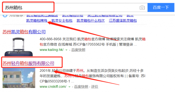 我們公司與蘇州市輕舟箱包服飾有限公司合作中,對這個公司所經營的箱包這個行業提供了百度快照排名,與該公司的合作,更多的客戶讓我們公司為其提供百度快照排名,通過每一次合作,我們公司不斷完善自己,同時希望合作伙伴在經營的路上越來越好。