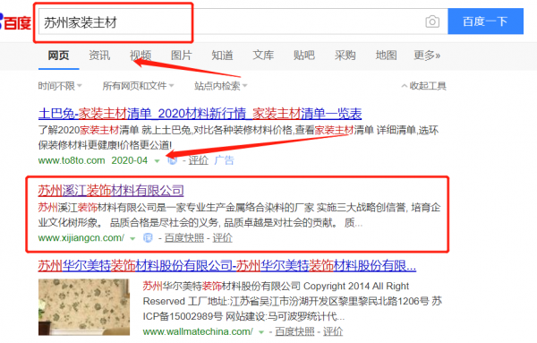 蘇州溪江裝飾材料有限公司選用我司企業家裝主材行業的網站優化產品,其SEO關鍵詞有家裝主材。快速優化系統火速推采用智能數據系統,效果一目了然,包括關鍵詞排名,消費,余額等,并通過大量的數據分析優化廣告效果。蘇州溪江裝飾材料有限公司成立于2006年,是經蘇州市市場監督管理局審核的有資質的公司,其統一社會信用代碼:91320507788386884K。公司地址:江蘇省蘇州市相城區望亭鎮項路村宅基浜路1-1號。