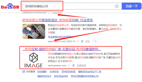 蘇州*象鐳射科技有限公司選用我司企業防偽商標的網站優化產品,其SEO關鍵詞有防偽商標。從站內到站外,人工智能全新搜索優化技術,最快7天關鍵詞排名上首頁,利用互聯網營銷手法,多平臺,多樣化進行品牌內容鋪設,營造企業正面形象。蘇州*象鐳射科技有限公司成立于2001年,是經蘇州市市場監督管理局審核的有資質的公司,其統一社會信用代碼:91320506**33559902。公司地址:江蘇省蘇州吳中經濟開發區興中路28號。