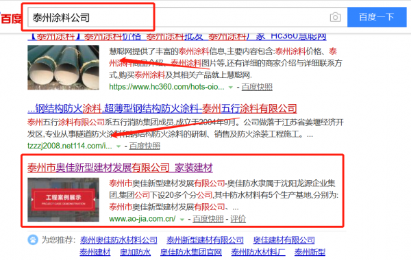 我們公司與泰州市奧佳新型建材發展有限公司合作中,對這個公司所經營的涂料這個行業提供了SEO推廣,與該公司的合作,更多的客戶讓我們公司為其提供SEO推廣,通過每一次合作,我們公司不斷完善自己,同時希望合作伙伴在經營的路上越來越好。