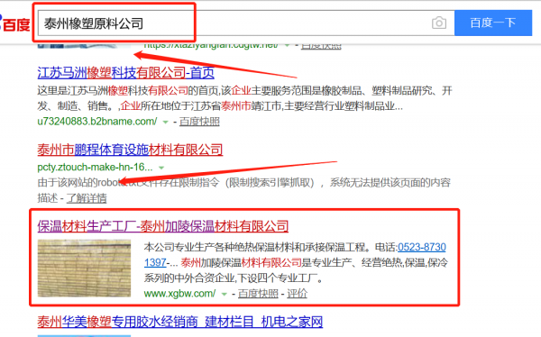 泰州加陵保溫材料有限公司選用我司企業橡塑原料的網站優化產品,其SEO關鍵詞有橡塑原料。關鍵詞不限點擊次數,大量搜索流量直達官網;PC + 手機端搜索首頁自然排名,365天持效穩定收錄。泰州加陵保溫材料有限公司成立于1992年,是經泰州市市場監督管理局審核的有資質的公司,其統一社會信用代碼:9132128360879251X1。公司地址:江蘇省泰州市泰興市廣陵鎮西街44號。