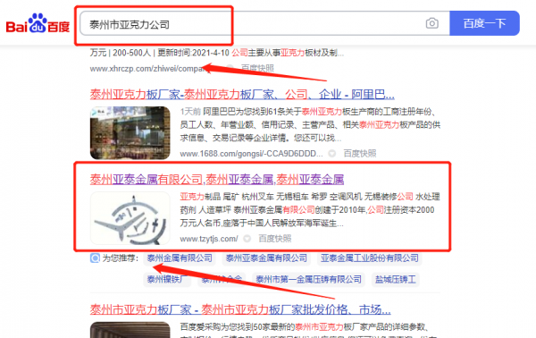 泰州亞*金屬有限公司SEO優(yōu)化最快上詞效果展示