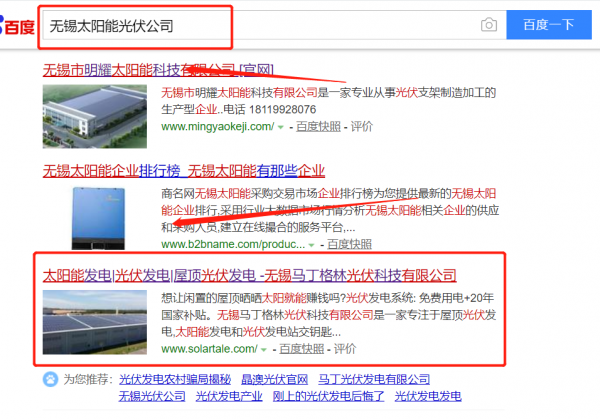 我們公司與無錫*丁格林光伏科技有限公司合作中,對這個公司所經營的太陽能光伏這個行業提供了關鍵詞搜索排名,與該公司的合作,更多的客戶讓我們公司為其提供SEO優化,通過每一次合作,我們公司不斷完善自己,同時希望合作伙伴在經營的路上越來越好。