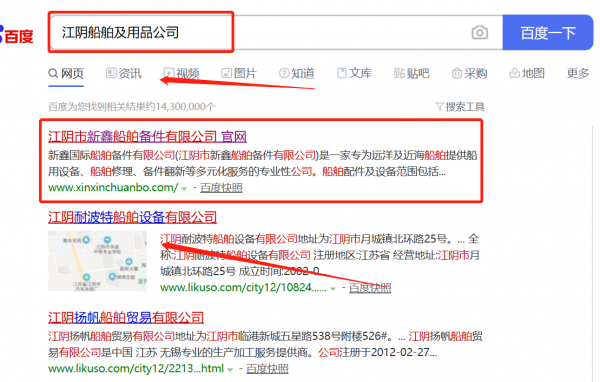 江陰市*鑫船舶備件有限公司選用我司企業(yè)船舶及用品的網(wǎng)站優(yōu)化產(chǎn)品,其SEO關(guān)鍵詞有船舶及用品。通過對(duì)搜索引擎目標(biāo)關(guān)鍵詞優(yōu)化,使目標(biāo)網(wǎng)站的相關(guān)信息顯示在百度首頁,為企業(yè)挖掘更多的潛在客戶的同時(shí)帶來海量的商機(jī)。江陰市*鑫船舶備件有限公司成立于2014年,是經(jīng)江陰市市場(chǎng)監(jiān)督管理局審核的有資質(zhì)的公司,其統(tǒng)一社會(huì)信用代碼:91320281**413405XM。公司地址:江蘇省無錫市江陰市鎮(zhèn)澄路1918號(hào)。