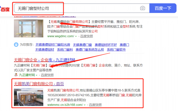 無(wú)錫*美門(mén)窗有限公司選用我司企業(yè)門(mén)窗型材的網(wǎng)站優(yōu)化產(chǎn)品,其SEO關(guān)鍵詞有門(mén)窗型材。搶占百度、360搜索、搜狗等搜索引擎首頁(yè)自然排名(PC端 + 手機(jī)端),高客流量導(dǎo)入,SEO推廣效果更突出。無(wú)錫*美門(mén)窗有限公司成立于2015年,是經(jīng)無(wú)錫市市場(chǎng)監(jiān)督管理局審核的有資質(zhì)的公司,其統(tǒng)一社會(huì)信用代碼:91320205**6529657C。公司地址:江蘇省無(wú)錫市錫山區(qū)東亭街道華夏中路18-5號(hào)。