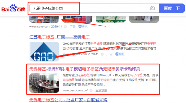 我們公司與貝*卡勒(無錫)印刷有限公司合作中,對這個公司所經營的電子標簽這個行業提供了整站優化,與該公司的合作,更多的客戶讓我們公司為其提供百度快照排名,通過每一次合作,我們公司不斷完善自己,同時希望合作伙伴在經營的路上越來越好。