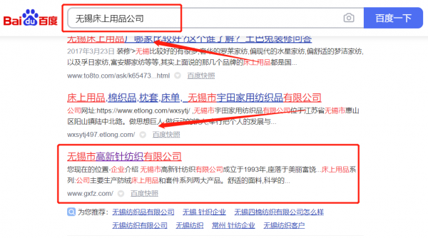 無錫市*新針紡織有限公司網站排名保證在首頁效果