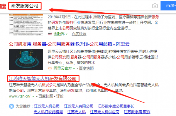 我們公司與江蘇唯天智能無人機研發公司合作中,對這個公司所經營的研發服務這個行業提供了百度快照排名,與改公司的合作,更多的客戶讓我們公司為其提供百度快照排名,通過每一次合作,我們公司不斷完善自己,同時希望合作伙伴在經營的路上越來越好。