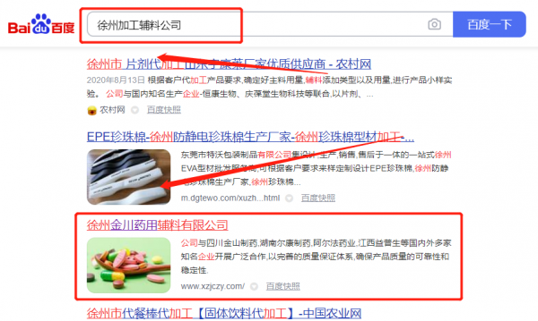 徐州*川藥用輔料有限公司百度排名最快上詞效果展示