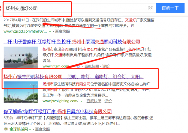 我們公司與揚州市振生照明科技有限公司合作中,對這個公司所經營的交通燈這個行業提供了百度快照排名,與該公司的合作,更多的客戶讓我們公司為其提供百度快照排名,通過每一次合作,我們公司不斷完善自己,同時希望合作伙伴在經營的路上越來越好。
