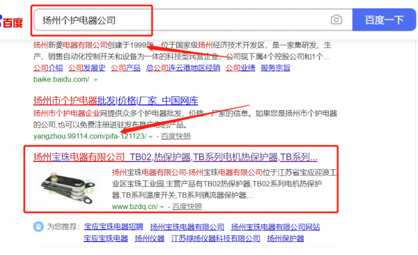 揚州*珠電器有限公司百度關鍵詞排名排名效果展示