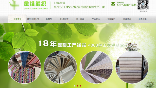 溫嶺市金維工藝編織有限公司原新原紙編廠,專業(yè)從事編織生產(chǎn)已有18年,是集開發(fā)、生產(chǎn)、銷售于一體的企業(yè),公司占地面積13000平方米,其中建筑面積10000平方米 ,技術(shù)研發(fā)人員8名,生產(chǎn)力強(qiáng)大、技術(shù)力量雄厚,是同行業(yè)中具有實(shí)力的企業(yè)。公司主要從事紙編、PP針織、麻編、PE/PP Xorel功能墻布及紙棉麻混紡織品設(shè)計(jì)和生產(chǎn)。如:紙編布、單絲布、針織PP布(網(wǎng)編布)、彈性PP草(PP鉤針布)、黃麻布(劍麻)、PE/PP Xorel編織功能墻布、PVC(特斯林)墻布,紙草辮、PP辮等。產(chǎn)品主要用于五星級(jí)酒店、大型娛樂會(huì)所 、大型桑拿浴場(chǎng)、別墅和住宅小區(qū)裝飾布;也被用于硬(軟)包用布、箱包、鞋材、地墊、窗簾布藝、燈飾布、餐墊、收納箱、編織帽、禮品包裝袋(盒)等工藝品和紡織制品……公司以“裝點(diǎn)時(shí)尚,原色創(chuàng)新”為宗旨,產(chǎn)品全部采用純天然原料制作,追求高品質(zhì)、高檔次、綠色又環(huán)保;產(chǎn)品出口日本、韓國、歐美、中東各地。本公司秉著“以誠取信、以質(zhì)求存”的經(jīng)營理念,竭誠歡迎海內(nèi)外新老客戶與我們聯(lián)系,尋求合作,互惠互利,裝點(diǎn)美好的生活