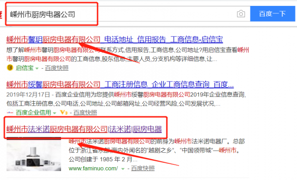 嵊州市法米諾廚房電器有限公司與本司簽約百度快照排名協議
