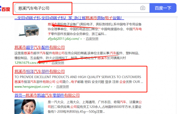 慈溪市*澤汽車部件有限公司選用我司企業汽車電子行業的網站優化產品,其SEO關鍵詞有汽車電子。為您公司提供免費網站診斷分析,將給您一份滿意的答卷。海洋網絡整合了多年的深圳SEO外包資源以及經驗的一種有別于單純關鍵詞排名服務的另外一種SEO優化服務。慈溪市*澤汽車部件有限公司成立于2011年,是經慈溪市市場監督管理局審核的有資質的公司,其統一社會信用代碼:91330282**8234895Y。公司地址:浙江省慈溪市坎墩街道聯發路788號。