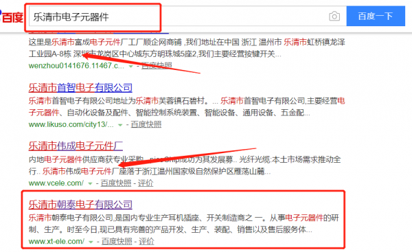 我們公司與樂清市朝泰電子有限公司合作中,對這個(gè)公司所經(jīng)營的電子元器件這個(gè)行業(yè)提供了百度快照排名,與該公司的合作,更多的客戶讓我們公司為其提供百度快照排名,通過每一次合作,我們公司不斷完善自己,同時(shí)希望合作伙伴在經(jīng)營的路上越來越好。