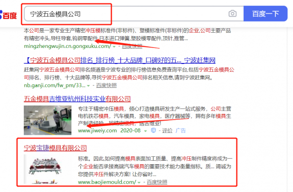 我們公司與寧波*捷模具有限公司合作中,對這個公司所經營的暖通給排水這個行業提供了快速排名,與該公司的合作,更多的客戶讓我們公司為其提供快速排名,通過每一次合作,我們公司不斷完善自己,同時希望合作伙伴在經營的路上越來越好。