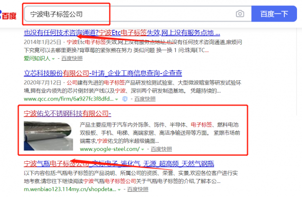 寧波*戈不銹鋼科技有限公司選用我司企業電子標簽的網站優化產品,其SEO關鍵詞有電子標簽。從站內到站外,人工智能全新搜索優化技術,最快7天關鍵詞排名上首頁,利用互聯網營銷手法,多平臺,多樣化進行品牌內容鋪設,營造企業正面形象。寧波*戈不銹鋼科技有限公司成立于2018年,是經寧波市市場監督管理局審核的有資質的公司,其統一社會信用代碼:91330211M**CHCGT6D。公司地址:浙江省寧波市鎮海區莊市街道莊俞南路581號。