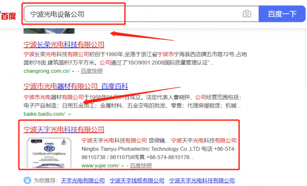 我們公司與寧波*宇光電科技有限公司合作中,對(duì)這個(gè)公司所經(jīng)營(yíng)的光電設(shè)備這個(gè)行業(yè)提供了關(guān)鍵詞搜索排名,與該公司的合作,更多的客戶(hù)讓我們公司為其提供關(guān)鍵詞搜索排名,通過(guò)每一次合作,我們公司不斷完善自己,同時(shí)希望合作伙伴在經(jīng)營(yíng)的路上越來(lái)越好。