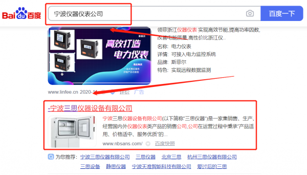 寧波三*儀器設備有限公司網站排名最快上詞效果展示